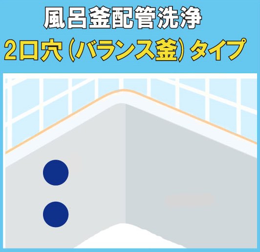 | 2口穴風呂釜 配管洗浄 | 20,000円(税込) | 1時間〜 (浴槽1台) |